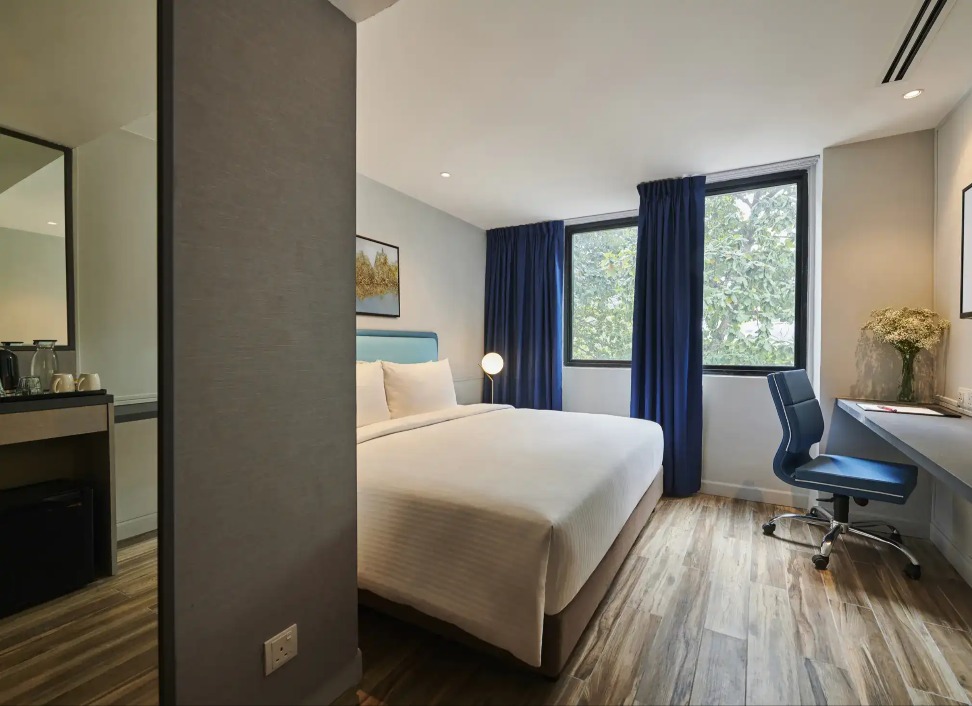 A spacious room varying from 18 to 19 m² in size, the Superior Room comes with an array of exclusive amenities. From a king or twin beds with lavish bedding, complimentary WiFi access, in-room safe to outlet adapters and in-room tea,coffee and drinking water, the Superior Room is fitted with all that is needed to ensure a comfortable, convenient and luxurious stay for guests. With wall-to ceiling tiles in deep hues of turquoise or stylish black and complemented by modern fittings including a rain shower and a full range of bathroom amenities inclusive of a hairdryer and slippers, the en-suite bathroom allows you an invigorating bath experience after a long day of exploring. Once done, walk in to your room and choose your favourite drink from the in-room mini fridge provided and let the the soothing whisper of the pulsing city whisk you to a serene slumber at the end of the day.