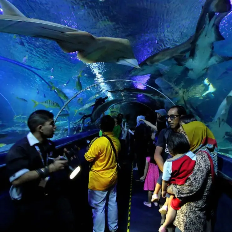 A cherished oceanarium in the heart of Kuala Lumpur, Aquaria KLCC has become one of the most popular tourist attractions in the region, known for its fantastical community of aquatic creatures! Many Malaysians have left a trail of at least one visit to this place in their memory, whether as a school trip or with their kids to explore the underwater world.With over 250 species and more than 5,000 land and sea creatures, the Aquarium offers visitors an amazing educational experience on marine ecology. Visitors can see a fascinating variety of marine life up close, from colorful tropical fish to mysterious jellyfish, and from graceful sea turtles to massive sharks. Whether you have a love of marine life or a quest for eco-education, the aquarium is a destination not to be missed!